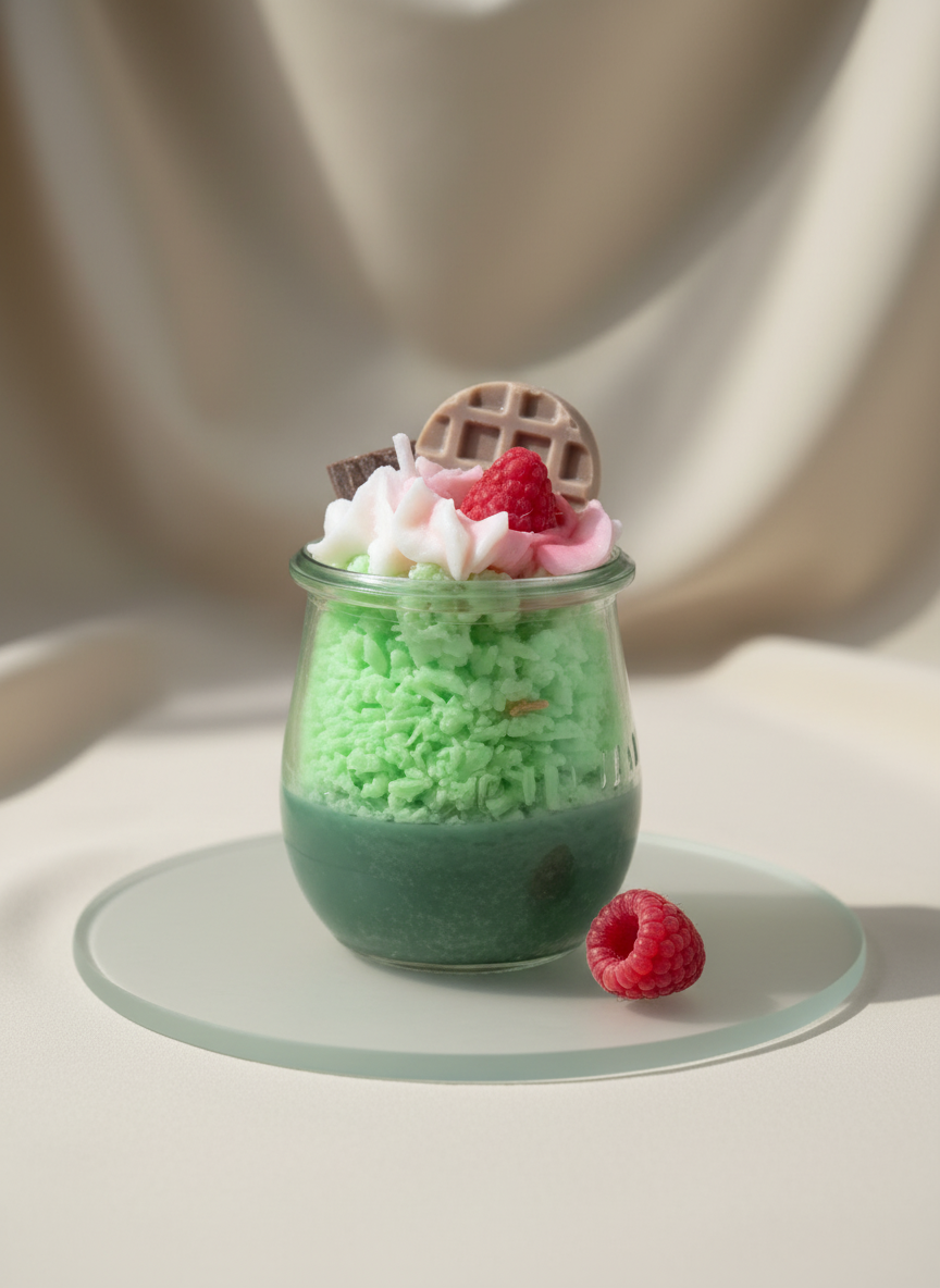 Handgegossene vegane Duftkerze im Dessertglas Handgegossene vegane Duftkerze im Dessertglas