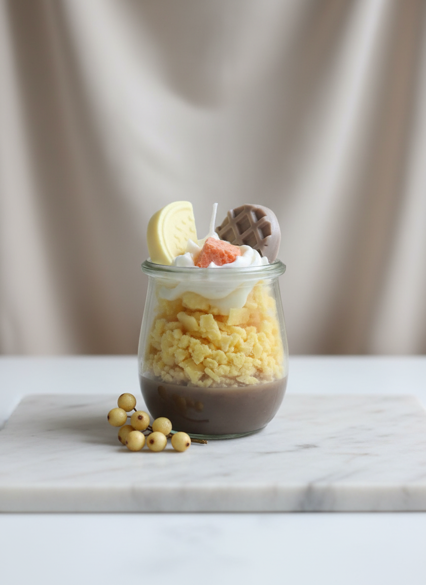 Handgemachte Sojawachskerze im Dessertglasduft Handgemachte Sojawachskerze im Dessertglasduft