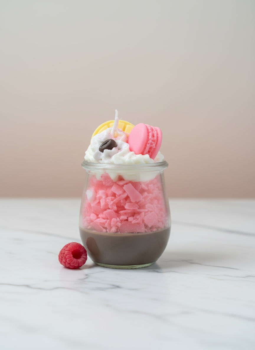 Macaron Delight Duftkerze im Dessertglas – Handgegossen & stilvoll