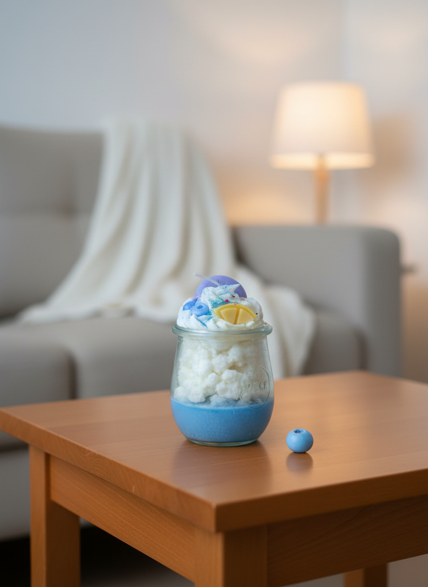 Handgegossene Sojawachskerze mit fruchtigem Duft Handgegossene Sojawachskerze mit fruchtigem Duft