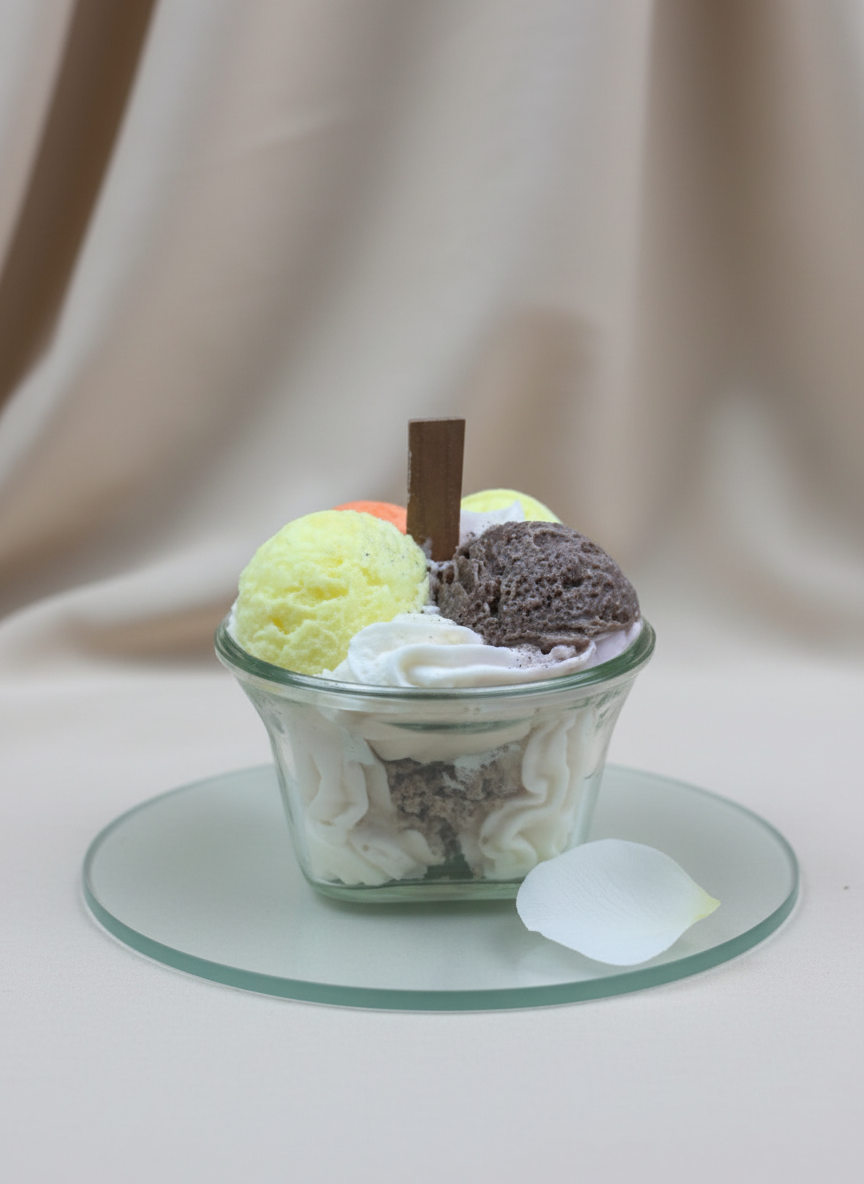 Handgegossene Eis-Duftkerze in pastellfarbener Schale – Geschenkidee aus Sojawachs