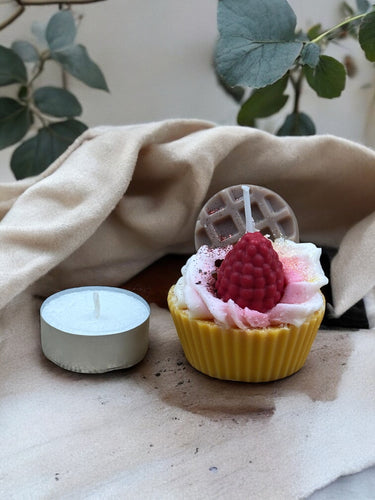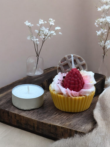 Waffel-Himbeer-Duftkerze – süßer Charme im Cupcake-Style